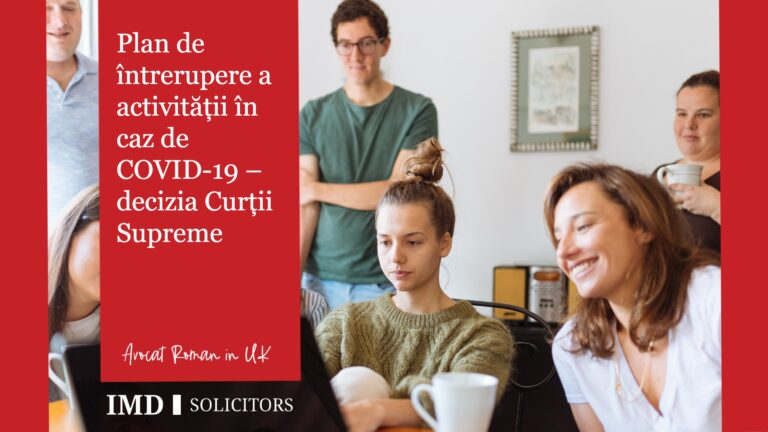 Coronavirus (COVID-19) O actualizare pentru clienții noștri. Având incertitudinea actuală în jurul COVID-19, dorim să vă asiguram că societatea noastra IMD Solicitors LLP este încă deschisă pentru afaceri. În ciuda faptului ca unii dintre colegii noștri lucrează de acasă, suntem întotdeauna angajați să oferim un serviciu perfect. Birourile noastre sunt încă deschise unde lucrăm cu […]