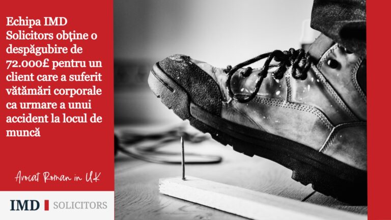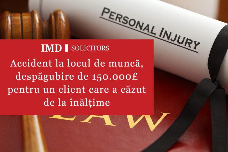 Echipa IMD Solicitors a obținut o despăgubire de 150.000£ pentru clientul nostru care a suferit vătămări corporale ca urmare a unui accident la locul de muncă. Clientul nostru a căzut de la înălțime de aproximativ 5 metri suferind multiple fracturi la coloană. Am putut să demonstrăm că angajatorul nu a pus la dispoziție asigurări corespunzătoare […]
