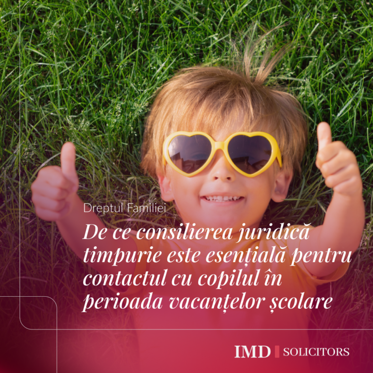 Organizarea contactului cu copiii în perioada vacanțelor școlare este o problemă uzuală pentru părinții separați. La IMD Solicitors LLP, sprijinim în mod regulat clienții să ajungă la acorduri de vacanță adecvate și sigure din punct de vedere juridic prin corespondență și negociere – adesea fără a fi necesară implicarea instanței.